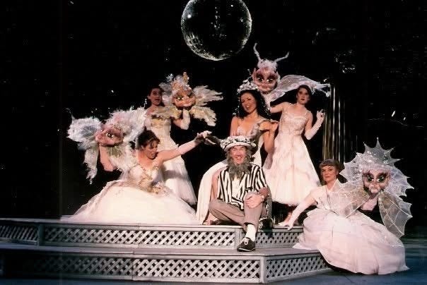The costumes were great in general, including Bottom’s ass-head, and as the costumes of the young lovers had no fluffy tulle under the skirts but just opaque tights, there ended up being some really cute exposed-butt humor throughout.
